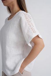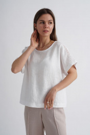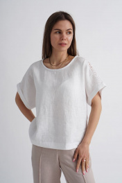 Льняная белая блузка свободного кроя с тесьмой Mirolia 1175 белый