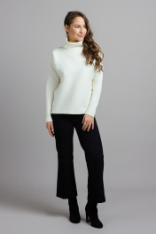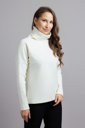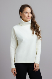 Стильный джемпер с удобным длинным рукавом «летучая мышь» и свободным воротником- стойкой. Приятный к телу. Низ джемпера ассиметричный, длина: По переду: Р-ры — 48-50 — 54см Р-ры — 52-54 — 58см По спинке: Р-ры — 48-50 - 60см Р-ры — 52 -54 - 64см Ширина по линии груди и бёдер: 48р - 104 см, 50р - 108 см, 52р - 112 см, 54р - 116см