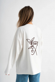 Хлопковый ЛОНГСЛИВ из турецкого качественного полотна с длинным рукавом,со спущенной линий плеча выполнен в одном размере one size , украшен уникальной вышивкой "Шнуром" на спине и вышивкой Mirolia спереди. Хлопковый джемпер– это прекрасная основа для создания повседневных нарядов. Добавьте свои любимые джинсы, обувь и аксессуары, чтобы создать стиль, подчеркивающий вашу индивидуальность. Подойдёт на размеры 44-52. Рост модели 164 см, размер 44. Длина Джемпера : 72 см Длина рукава включая плечо 44 см. Полуобхват джемпера: 62 см