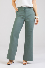 Стильные Брюки -Клёш изготовлены из качественного натурального льна с эффектом мятости. Брюки летнего ассортимента, свободные от бедра . По переду внутренние карманы. Сзади накладные карманы. Очень удобные. Застёгиваются спереди на молнию и 2 пуговицы. В задней части пояса вставлена резинка. Посадка: высокая . Длина брюк по боковому шву с поясом 110-112 см . Длина пояса ( резинка в растянутом виде): 46 р.-84 см, 48 р.-86 см, 50 р.-91 см, 52 р-95 см, 54 р-100 см, 56р-104 см
