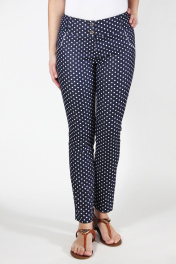 Демисезонные зауженные брюки из облегчённого джинса Mirolia 301 крупн.горох