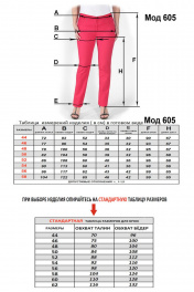 Стильные эластичные брюки 7/8 осенне-зимнего ассортимента, узкие по ноге с металлической молнией по боковому шву ( молния растёгивается). На передней половинке внутренний карман. Застёгиваются на молнию. Посадка : Р-ры 44-48 –средняя Р-ры 50-58- высокая. Таблицу измерений изделия смотрите на фото 6