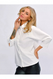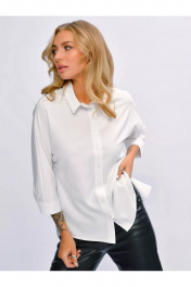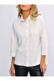 Блуза деловая из хлопка с воротником-стойкой и манжетой MIRSINA FASHION 1639 белый
