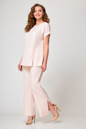 Летний костюм из текстиля с вышивкой и воланами Мишель стиль 1045-1 пудра - фото 2