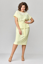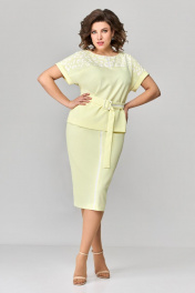 Блуза с кокеткой и юбка классической формы из лененного текстиля Мишель стиль 1113-1 лимонный