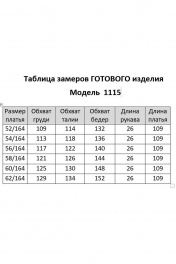 Платье свободного силуэта с V-образным вырезом горловины и ассиметричными горизонтальными подрезами по переду, низ платья фигурный с разрезами в боковых швах. Правая часть платья украшена нашивным элементом. Рукав втачной короткий с притачной манжетой по низу. Спинка со средним швом и горизонтальным подрезом, нижняя часть спинки со сборкой. Длина платья 107 см, длина рукава 27 см