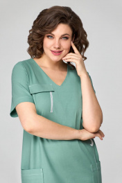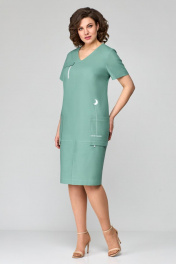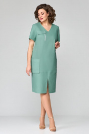 Платье с V-образным вырезом и накладными карманами из льна Мишель стиль 1122 мята