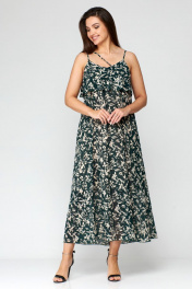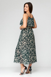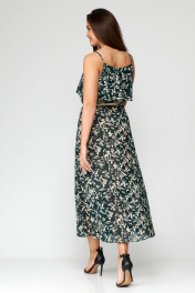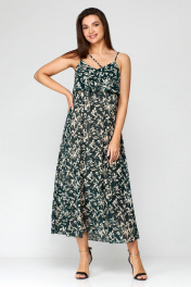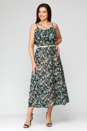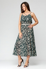 Зеленое шифоновое летнее платье с ремнем Мишель стиль 1131 зелено-бежевый