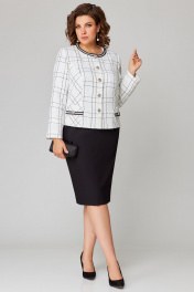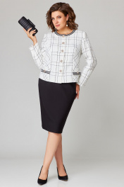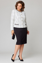 Элегантный белый и черный костюм с юбкой и жакетом Мишель стиль 1214 черно-белый