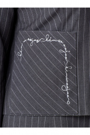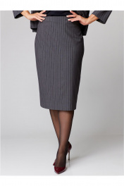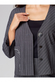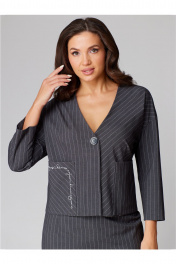 Стильный и оригинальный женский комплект в деловом стиле из ткани в полоску, который подойдет как для официальных мероприятий, так и в повседневной жизни, состоящий из жакета и юбки. Жакет прямого силуэта со спущенной линией плеча и накладными карманами по передней части, на правом кармане выполнена печать. Рукав двухшовный с длиной 7/8. V – образный вырез горловины. Потайная застежка с одной декоративной петлей и пуговицей. Спинка со средним швом. Юбка классическая с завышенной линией талии , зауженная к низу на подкладке. Верх юбки на обтачке. По заднему полотнищу юбки в среднем шве разрез и застежка на тесьму-молнию. Длина жакета 54 см. Длина рукава от горловины 63 см. Длина юбки 71 см.