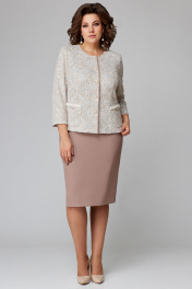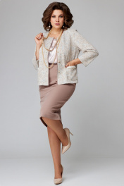 Голубой комплект из жакета и юбки с притачным поясом Мишель стиль 1216 бежево-голубой
