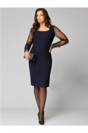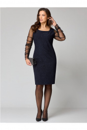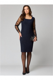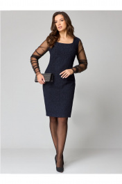 Нарядное платье с мерцающим эффектом и вставкой из сетки Мишель стиль 1231 темно-синий