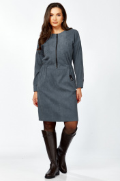 Платье полуприлегающего силуэта из мягкой, комфортной штруксовой ткани. Рукав спущенный, длинный, на манжете с застёжкой на 1 петлю и 1 пуговицу, разрезом. Горловина круглая, застёжка на тесьму-молнию контрастного цвета до талии. По талии подрез, по бокам спереди вставлена резинка, верхняя часть платья имитирует бомбер. Карманы- наклонные листочки, расположены на уровне бёдер по переднему полотнищу юбки, на левой листочке настрочена нашивка контрастного цвета. Перед платья с декоративными подрезами и отстрочкой. Спинка отрезная по талии, на резинке, со средним швом и разрезом по низу.