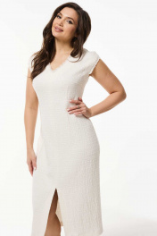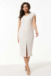 Платье прямого силуэта из текстиля с v-образной горловиной Mislana 1073 белый_с_кремовым