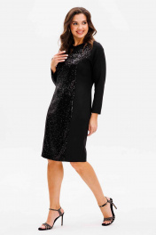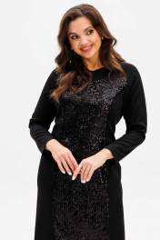 Расклешенное платье с рельефами и пайетками с эффектом шлейфа Mislana 1156 черный+пайетки