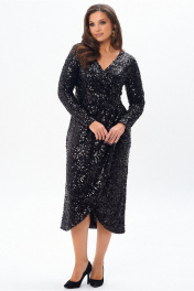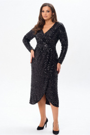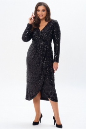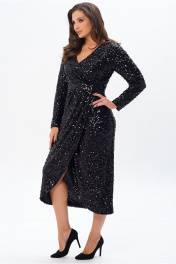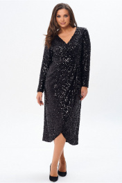 Платье с запахом на пуговицах из тюля и текстиля Mislana 1161 черный