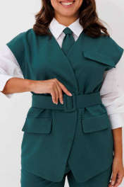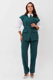 Блуза, брюки, жилет, галстук Mislana 12522 морская_волна_с_белой_блузой