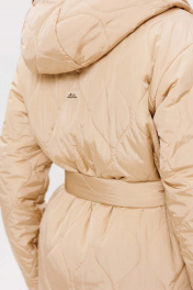 Куртка женская утеплённая осень-зима, прямого силуэта, со спущенными плечами, выполнено из ткани стёганная плащёвка на утеплителе изософт, с капюшоном. По переду накладные карманы , застёжка молния и притачная планка на кнопках. Воротник стойка. Рукава одно шовные втачные. Подкладка простёгана с утеплителем изософт. Дополнением служит пояс. Утеплитель изософт 150г/м. Без дополнительного утепления (кофта под куртку) будет комфортно от 0 до -15 градусов. Если на улице более низкая температура, то необходимо дополнительно одевать теплую одежду.