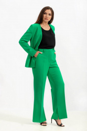 Зеленый деловой костюм из текстиля с прямыми брюками и жакетом Mislana 251 зеленый