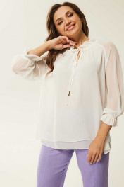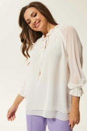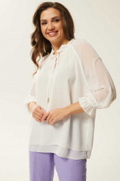 Белая свободная блуза с сборками и рукавами с резинкой Mislana 791 белый