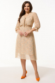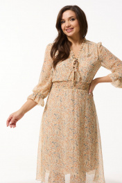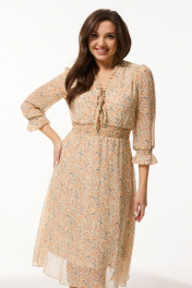 Свободное платье из шифона с резинкой по линии талии Mislana А897 беж