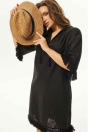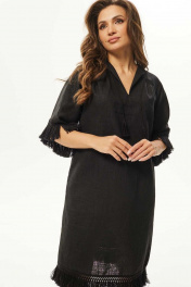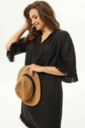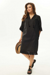 Летнее платье А-силуэта из текстиля с кружевной отделкой Mislana С938 черный