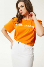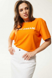 Летняя свободная майка из хлопка с декоративной печатью Mislana С962 оранж