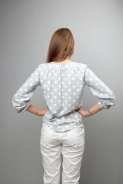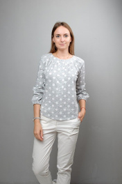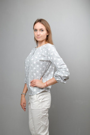 Демисезонная свободная блуза из трикотажа с манжетой и круглой горловиной Mita КМ350 серый_горох