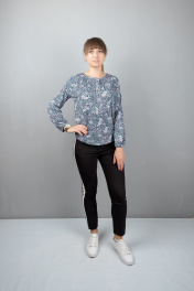 Круглогодичная свободная блуза из трикотажа с длинным рукавом Mita КМ375 голубой