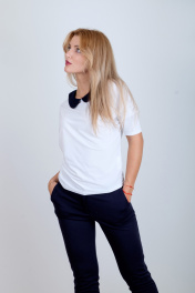 Круглогодичная белая блуза с зауженным рукавом 3/4 Mita КМ504