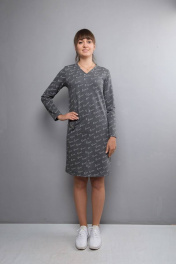 Трапециевидное платье из хлопка с потайным карманом Mita ЖМ1013 серый
