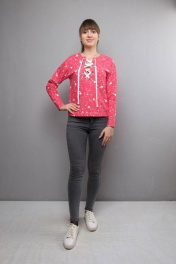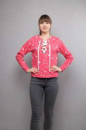 Блуза прямого силуэта с длинным рукавом и шнуровкой Mita ЖМ1026а звезды