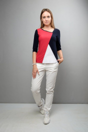 Блуза прямого силуэта с фигурной горловиной и рукавом ¾ Mita ЖМ1048 черно-красный-белый