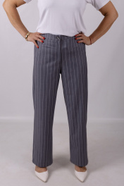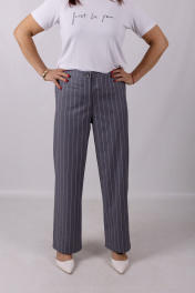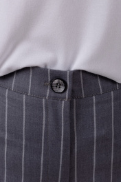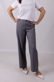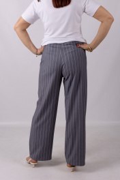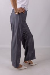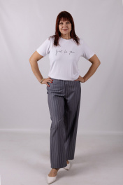Брюки прямого силуэта. Застёжка молния. Пояс сзади на резинке. Длина изделия: 102 см.