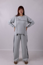Брюки прямого силуэта. Пояс на резинке. Боковые карманы. Лампас. Длина изделия: 102 см