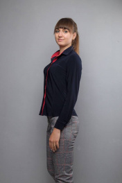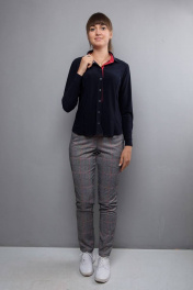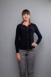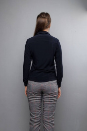 Деловая блуза синего цвета из трикотажа с кокеткой и воротником-стойкой Mita ЖМ726Б т.синий