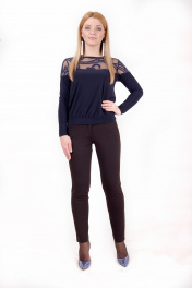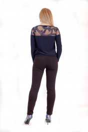 Джемпер из трикотажа с гипюровой кокеткой и манжетами Mita ЖМ857 темно-синий