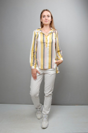 Блуза прямого кроя с декоративными рельефами и пуговицами Mita ЖМ999А желто-серо-розовая