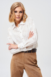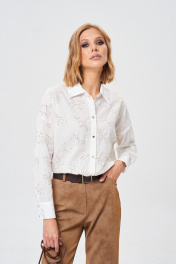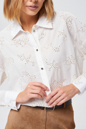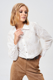 Демисезонная хлопковая рубашка с вышивкой и золотистыми пуговицами Mixan 2072
