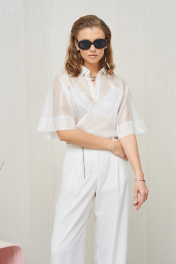 Блуза из полупрозрачной легковесной ткани. Длина блузы 61 см. Состав 83% вискоза, 17% ПЭ.
