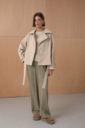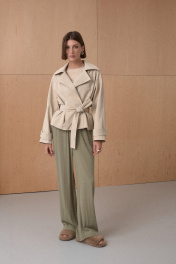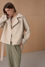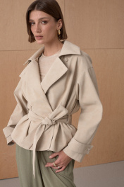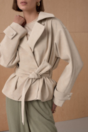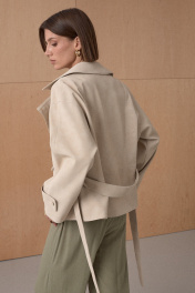 Жакет из премиальной мягкой экокожи. Сливочно ванильный оттенок. Длина от плечевой точки у основая шеи 62 см. Жакет на подкладке .Состав 100% ПЭ
