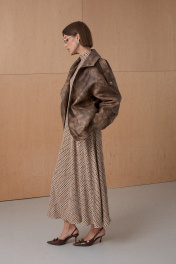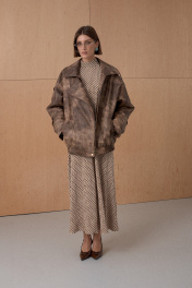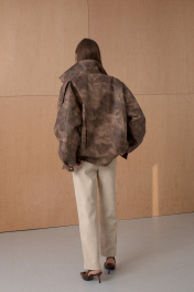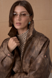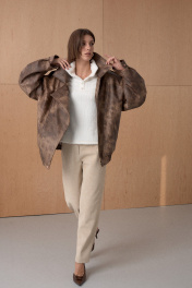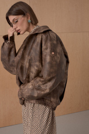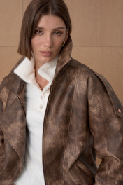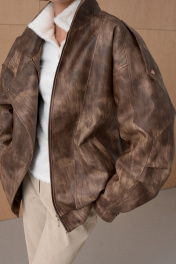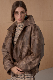 Жакет из премиальной виинтажной экокожи. Over-size. Интересное конструктивное решение. По низу резинка. На утеплителе. Температурный режим до +5. Длина от плечевой точки у основая шеи 76 см. Состав 100% ПЭ.