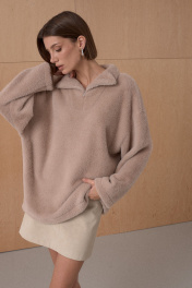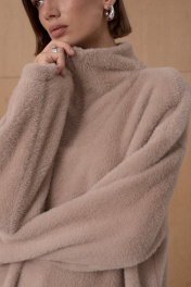 Джемпер из мягкого фактурного трикотажного полотна. Джемпер с высоким воротником на потайной молнии. Длина от плечевой точки у основая шеи 73 см. Состав 100% ПЭ