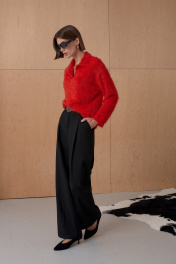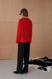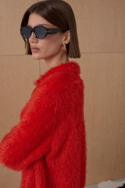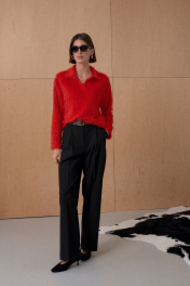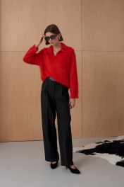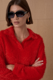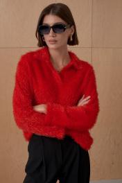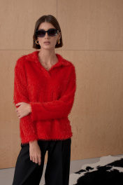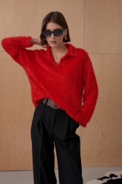 Поло из алого фактурного трикотажного полотна свободного силуэта. Длина поло 68 см. Состав 100% ПЭ