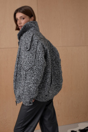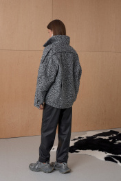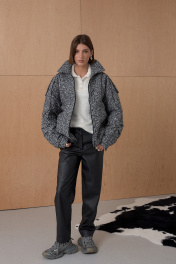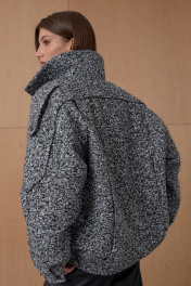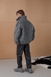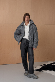 Жакет Over-size. Кожаный кант подчеркивает интересное конструктивное решение. По низу резинка. На утеплителе. Температурный режим до +5. Длина от плечевой точки у основая шеи 76 см. Состав 80% ПЭ, 20% шерсть