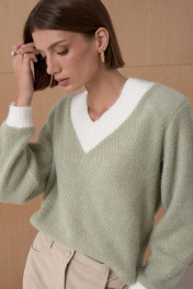 Тренд сезона! Джемпер из приятного мягкого трикотажного полотна. Джемпер имеет пушистую фактуру. Усиленная и расширеная линия плеча. Длина от плечевой точки у основая шеи 58 см. Состав 51% нейлон, 45% вискоза, 4% спандекс.