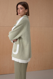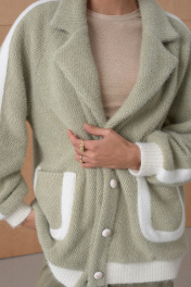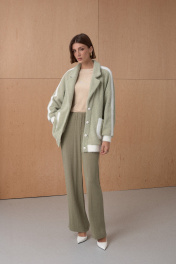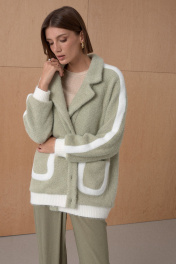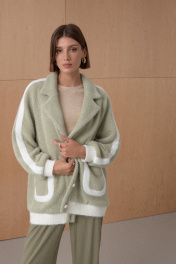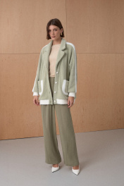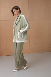 Жакет из твидовой ткани декорирован лентами в виде лампасов. На подкладке. Длина от плечевой точки у основая шеи 76 см. Состав 51% нейлон, 45% вискоза, 4% спандекс.