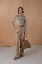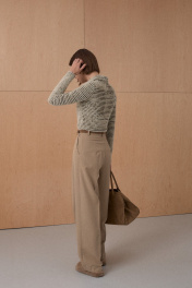 Демисезонные бежевые свободные брюки из костюмной ткани Mixan 3046