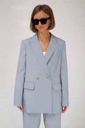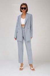 Голубой двубОРный жакет и брюки из костюмной ткани лето Mixan 4041/1