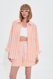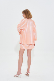 Костюм двойка свободного силуэта. Рубашка с длинным рукавом. Застежка на пуговицы. Шорты со стабильным поясом. В боковых швах карманы. Ремень-шнур в комплекте. Длина рубашки 70 см Длина рукава от воротника 75 см Длина шорт 43 см